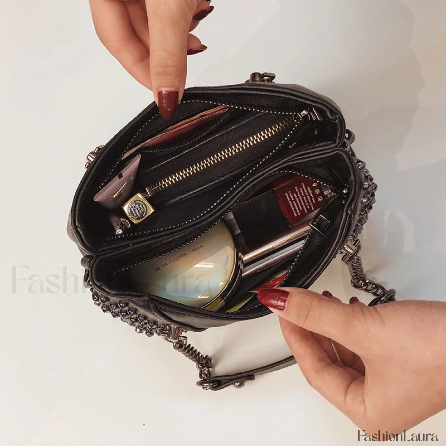 Studded Rivet Rock Chain Purse Leather Crossbody Wallet Punk Bag